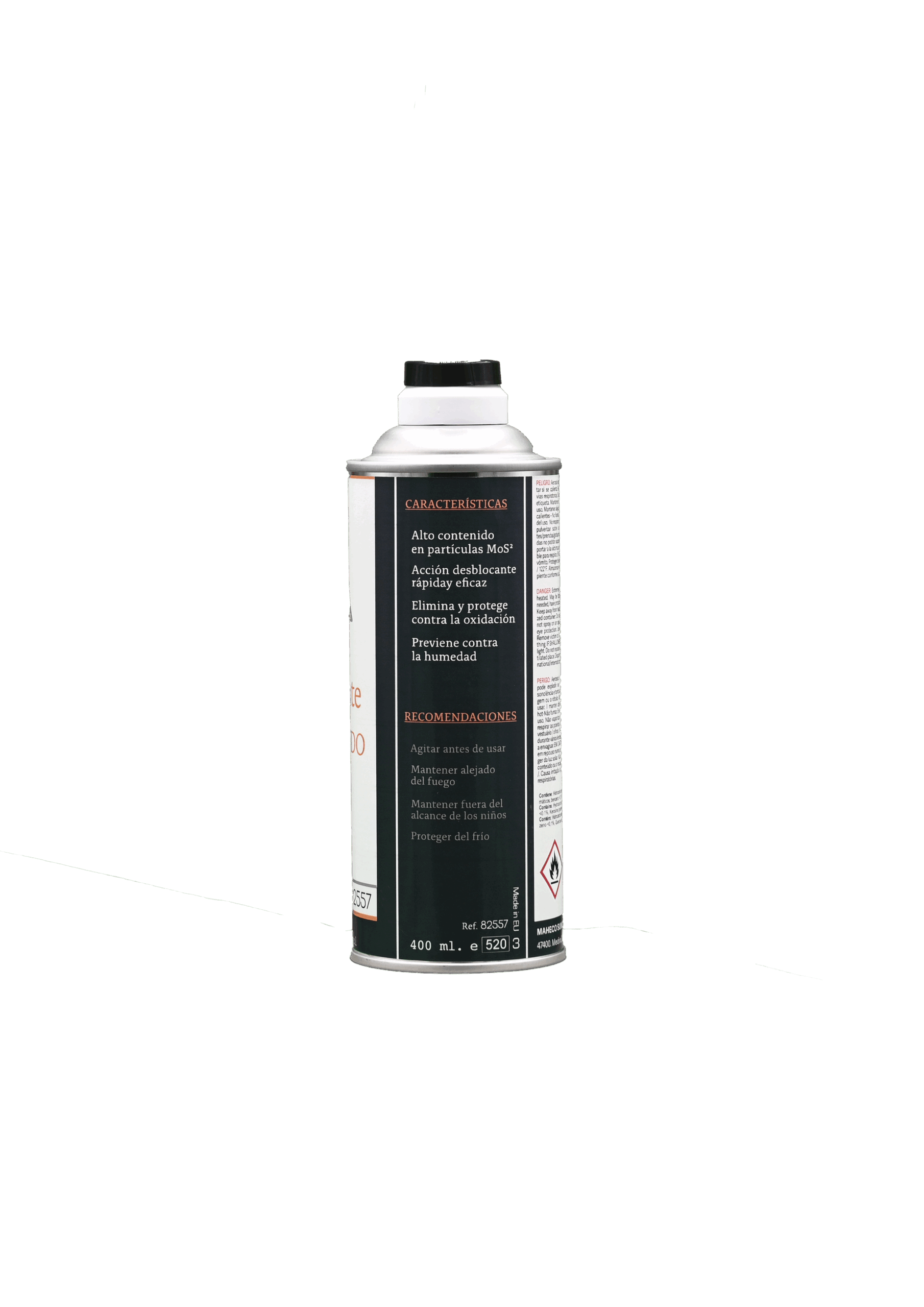 Aceite lubricante desblocante. Alto contenido en Bisulfuro de Molibdeno. Altamente eficaz contra el óxido. Protege y aÃsla de la humedad.