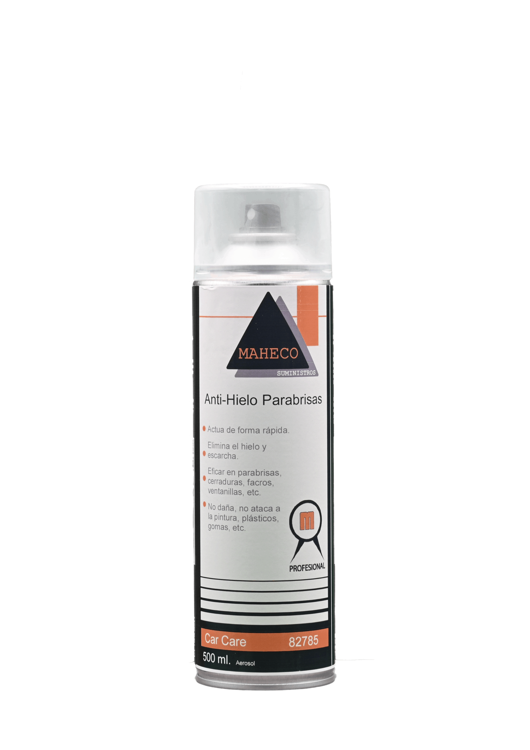 Actúa de forma rápida. Elimina el hielo y la escarcha. Eficaz en parabrisas, cerraduras, faros, ventanillas... No daña ni ataca a la pintura, plásticos, gomas...